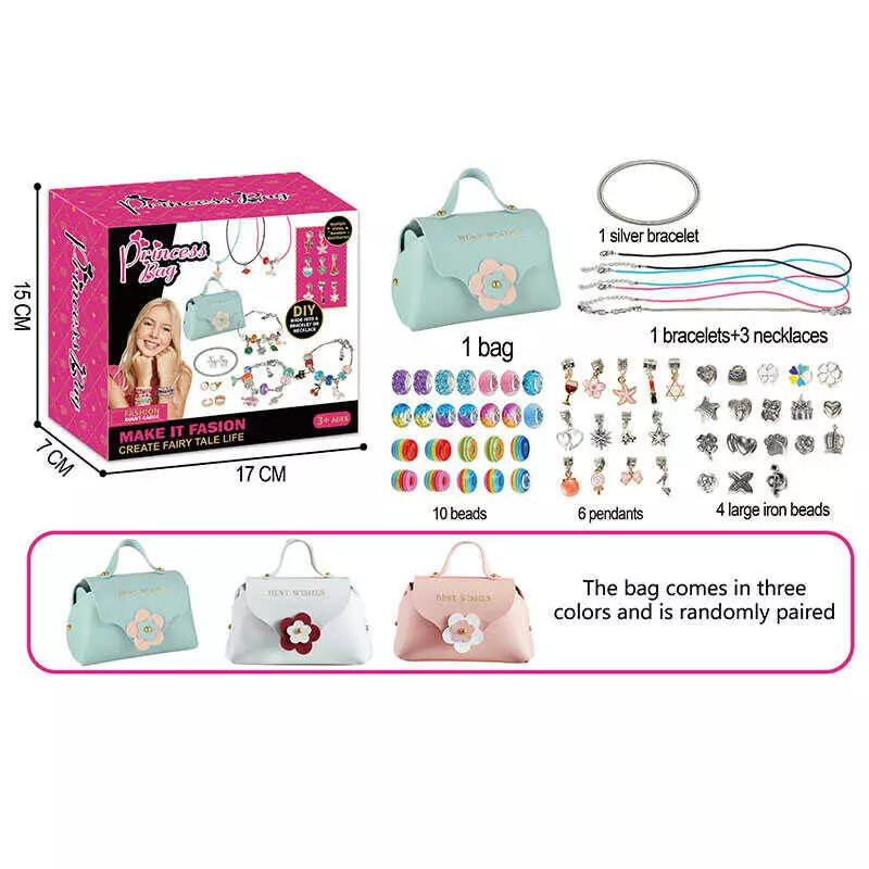 Набір прикрас 762-34 (120/2) намистини, підвіски, сумочка, основи для браслетів, в коробці