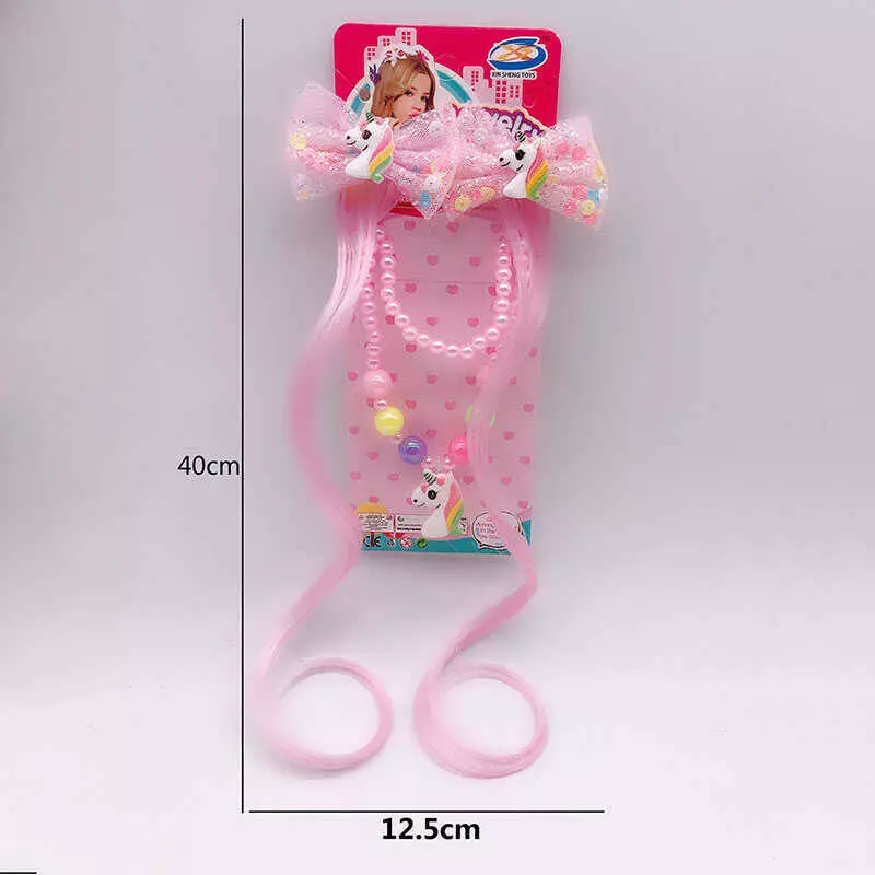 Набір прикрас A 12 (600/2) намисто, браслет, 2 прядки штучного волосся на заколках, прикраси-єдинороги, в пакеті