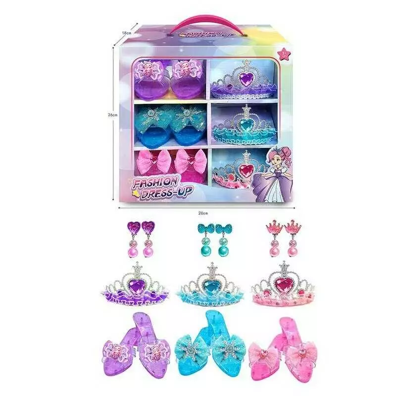 Набір прикрас JY 3405 (24/2) 3 пари туфельок, 3 корони, сережки, в коробці