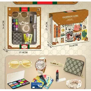 Набір прикрас K 4 (60) годинник, окуляри, резинка та шпилька для волосся, помада, гаманець, тіні для повік та імітація банківських карток, в коробці