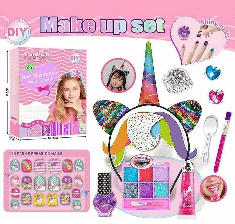 Набір косметики L 5306 (120/2) лак, глітер, прикраси, блиск для губ, обруч, блискітки, аплікатор, пензлик, наліпки для нігтів, в коробці