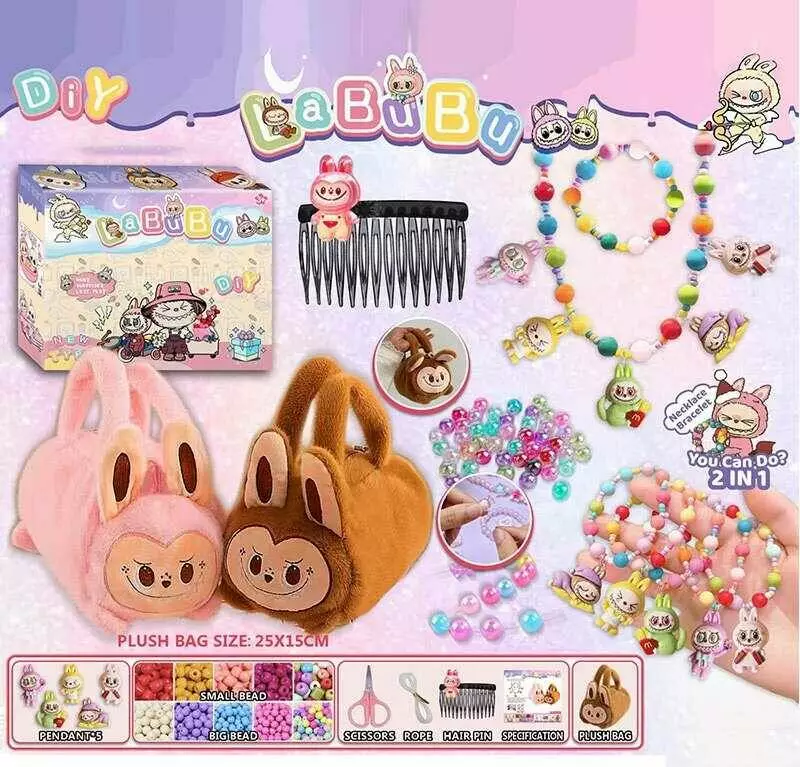 Набір прикрас L 5337 (120/2) 2 види, герой, сумочка, ножиці, намистини, ліска, в коробці