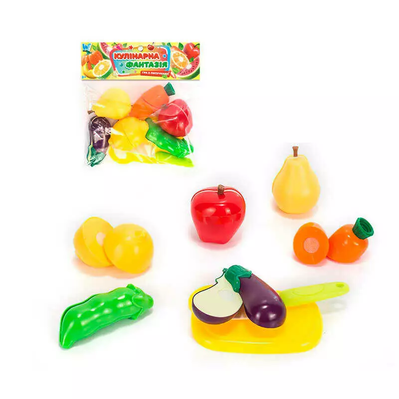 Набір продуктів “Кулінарна фантазія” 556622 (144/2) "WToys", 14 елементів, овочі та фрукти на липучках, дошка для нарізання, ніж, у пакеті