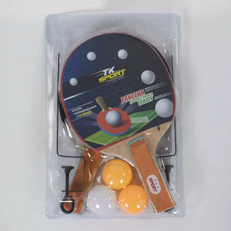 Набір ракеток для пінг-понгу С 34430 (50) "TK Sport" сітка, 2 ракетки + 3 м`ячі, в слюді