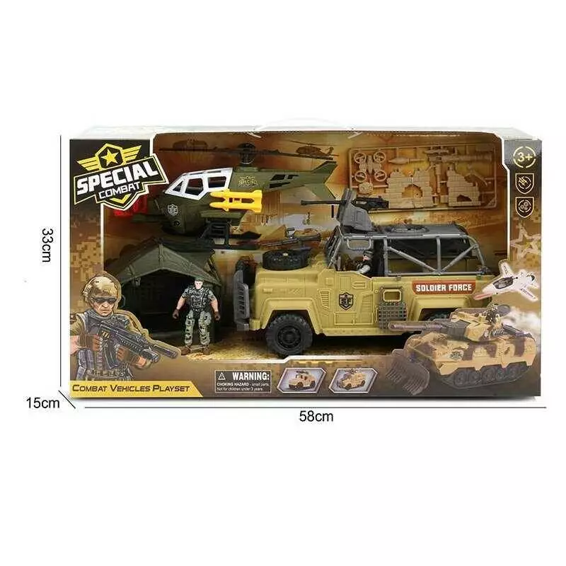 Набір військової техніки G 3109-57 (12) гелікоптер, машина, 2 фігурки військових, зброя, намет, в коробці