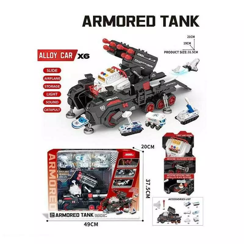 Набір спецтехніки JP 588-69 (6) звуки, підсвічування, запускач, рухливі елементи, 6 металопластикових машинок, в коробці