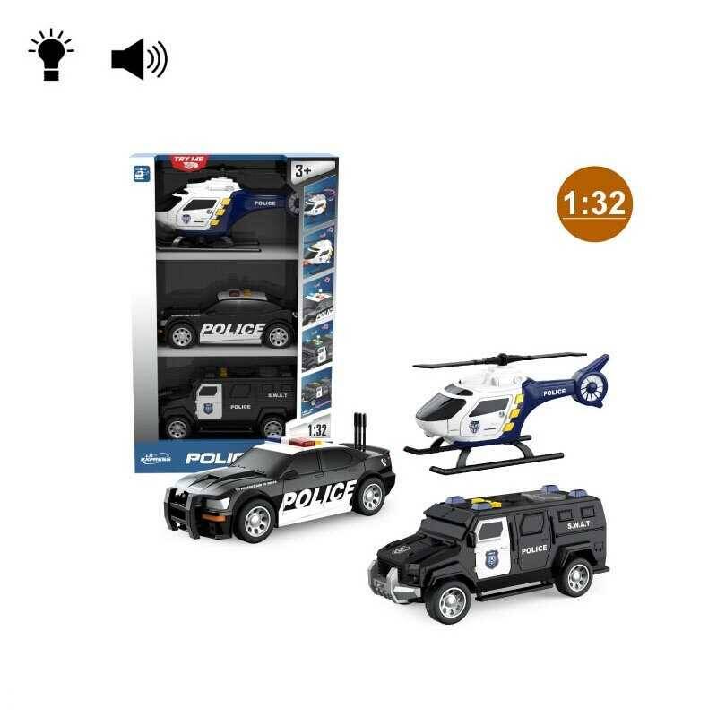 Набір спецтехніки WY 1108 A-3 (36) “Поліція”, масштаб 1:32, підсвічування, інерція, звуки, гумові шини, в коробці