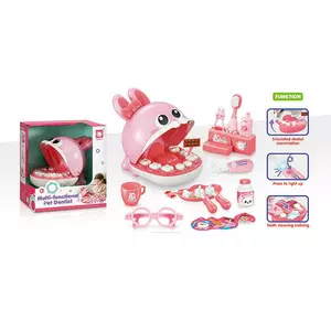 Набір стоматолога 855 (48) муляжі щелеп, рот зайчика відкривається, підсвічув. стомат. інструмента, аксесуари, зубна щітка, окуляри, щипці, в коробці