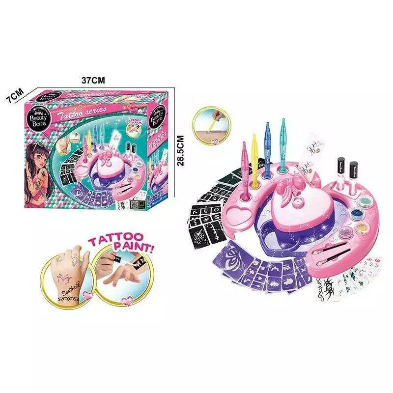 Набір тимчасових татуювань RY 6303 (36/2) трафарети, глітер, 2 аплікатори, олія, ігрова платформа, в коробці