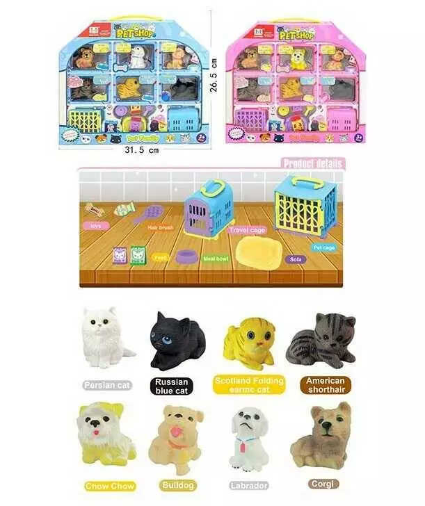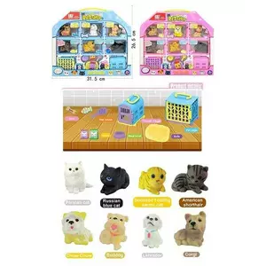 Набір тварин A 1687 (48/2) 2 види, 6 гумових тварин з пискавками, 2 переноски, аксесуари, в коробці