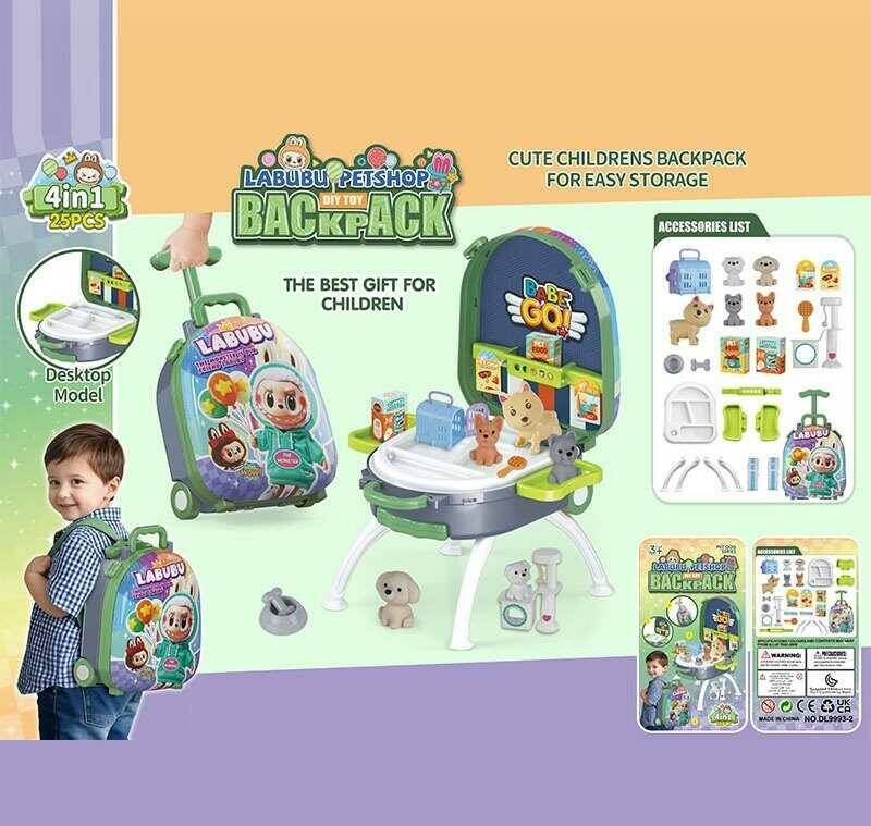 Набір тварин DL 9993-2 (36/2) герой, 5 фігурок тварин, аксесуари, ігрова платформа, висувна ручка, ремінець, на колесах, у валізі