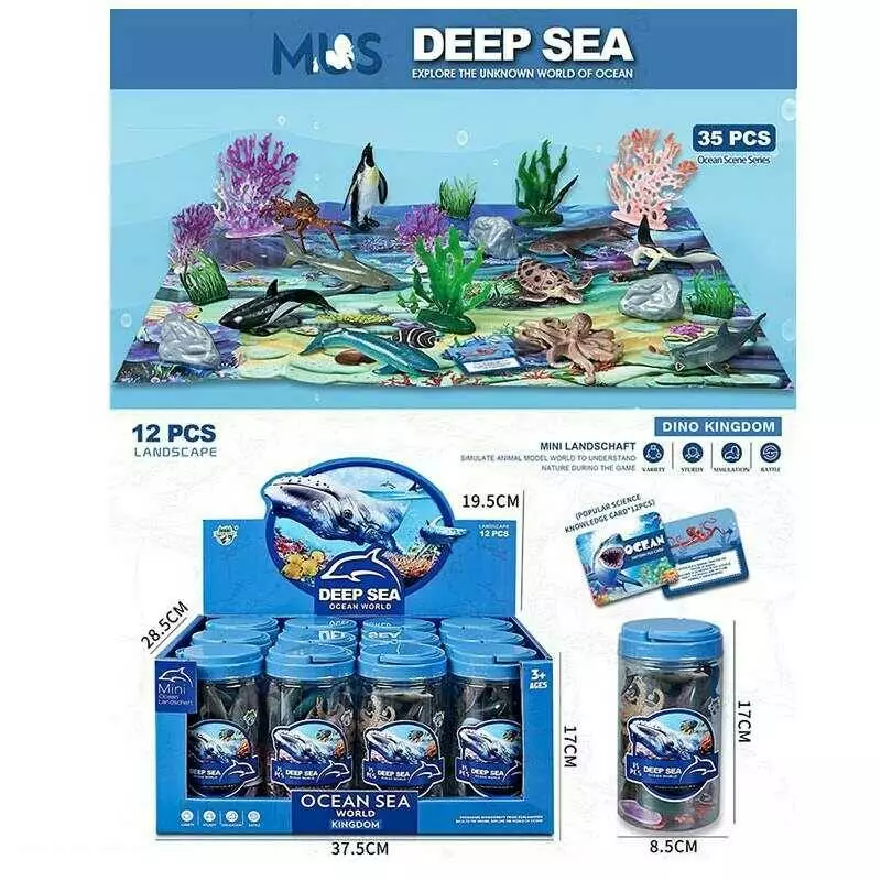 Набір тварин E 034-3 (6) ЦІНА ЗА 12 ШТУК В БЛОЦІ “Морські мешканці” 35 елементів, аксесуари, картки, карта, в тубі