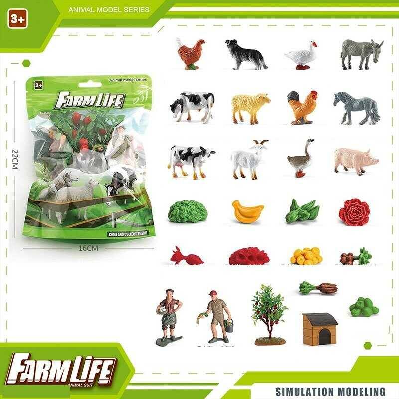 Набір тварин YJ 711 (100) “Свійські тварини”, фігурки людей, овочі та фрукти, 12 тварин, в пакеті