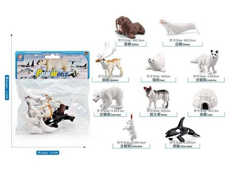 Набір тварин YJ 813 D (144) "Полярні тварини", 9 фігурок, іглу, середня довжина 5 см, в пакеті
