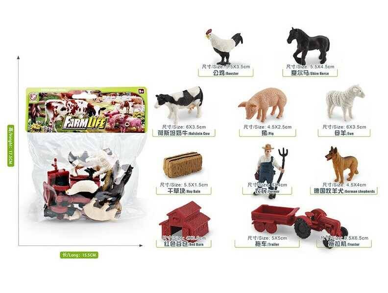Набір тварин YJ 833 D (144) "Свійські тварини", 6 фігурок, фермер, сіно, трактор, хлів, середня довжина тварин 5.5 см, в пакеті