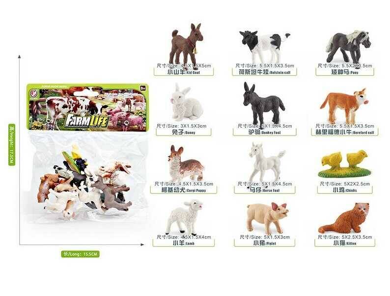 Набір тварин YJ 834 D (144) "Свійські тварини", 12 фігурок, середня довжина 5 см, в пакеті