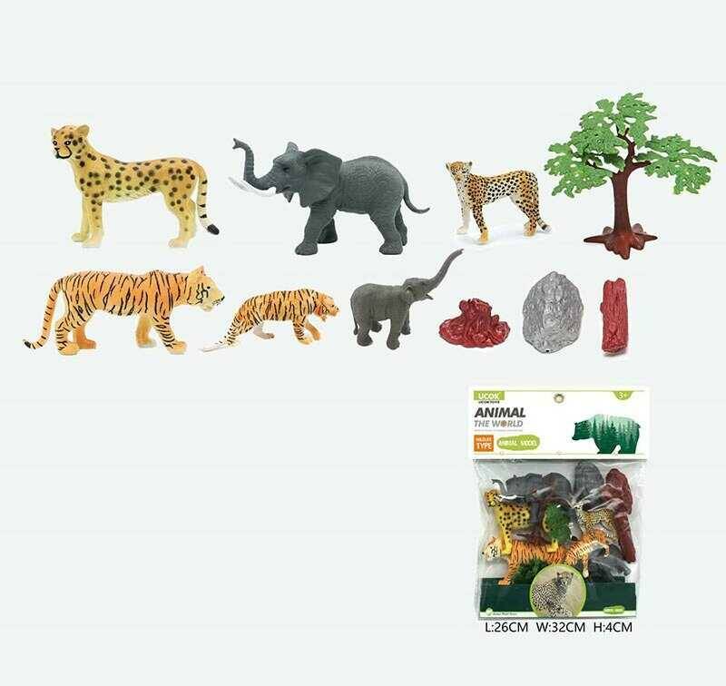 Набір тварин YX-Y 171-1 (96/2) "Дикі тварини", 6 фігурок, декорації, середня довжина 11 см, в пакеті