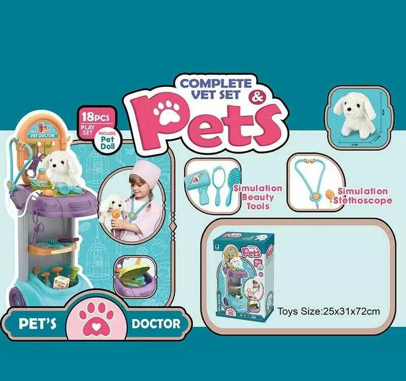Набір ветеринара 661-218 (8) м`яка іграшка, мед.інструменти, стійка, у коробці