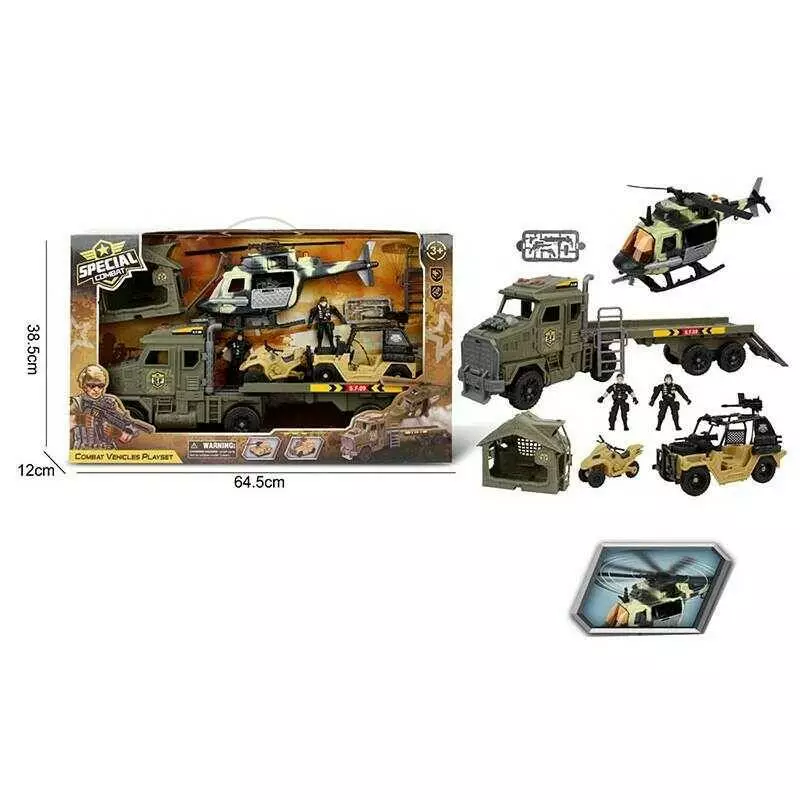 Набір військової техніки G 3109-41 (9) трейлер, гелікоптер, машина, скутер, намет, 2 фігурки військових, аксесуари, в коробці