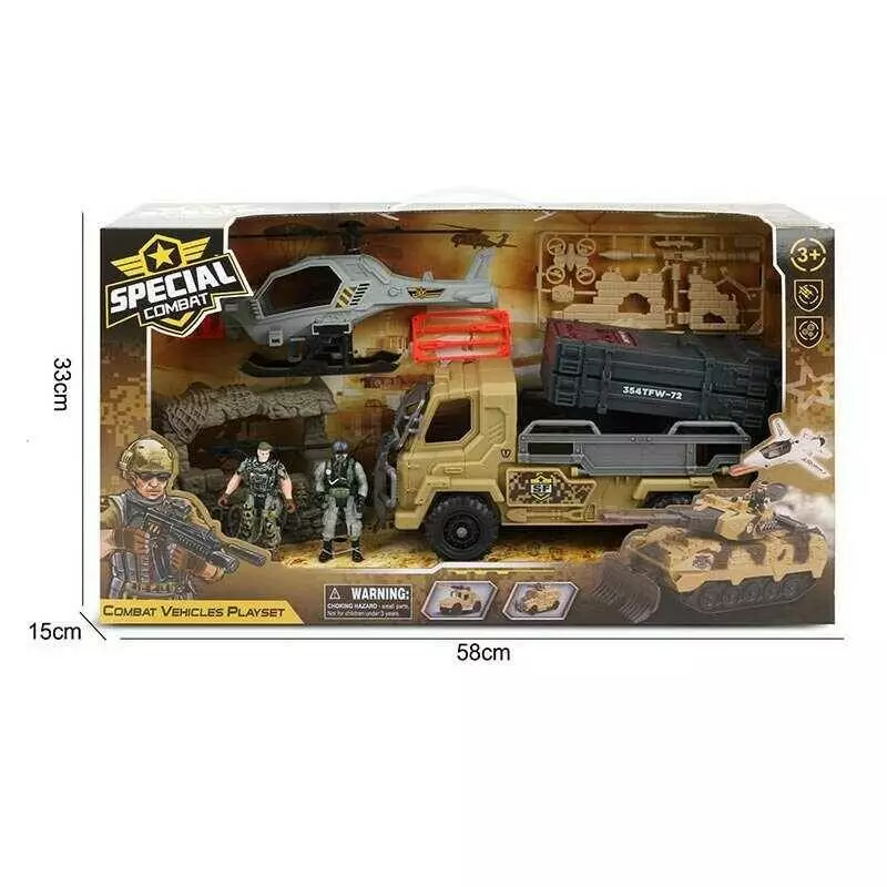 Набір військової техніки G 3109-58 (12) машина з запускачем, гелікоптер, 2 фігурки військових, рухомі частини, зброя, укриття, в коробці