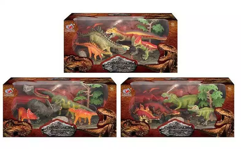 Набор динозавров Q 9899-224 (12/2) 3 вида, 7 элементов, 4 динозавра, 3 аксессуара, в коробке