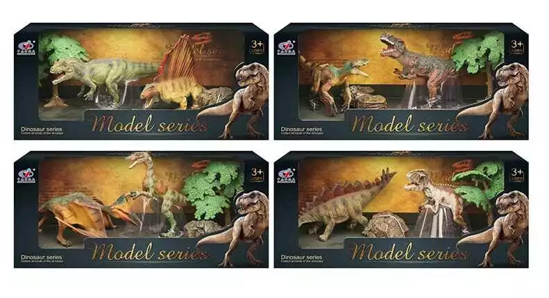 Набор динозавров Q 9899 M 7 (48/2) 4 вида, 2 динозавра, 2 аксессуара, в коробке