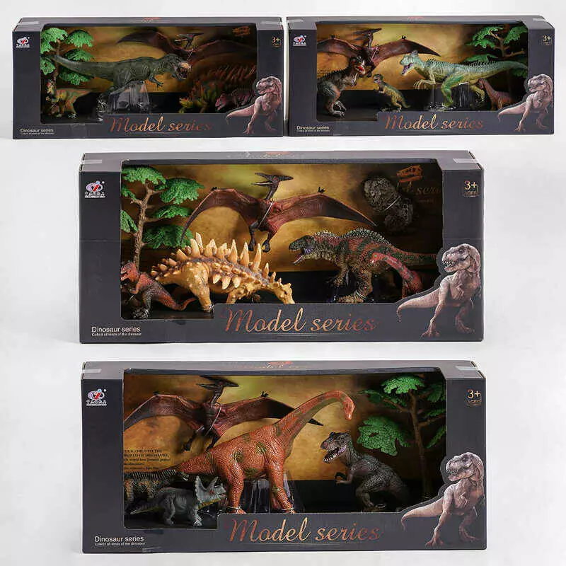 Набор динозавров Q 9899 W1 (12) 4 вида, 6 элементов, 5 динозавров, аксессуар, в коробке