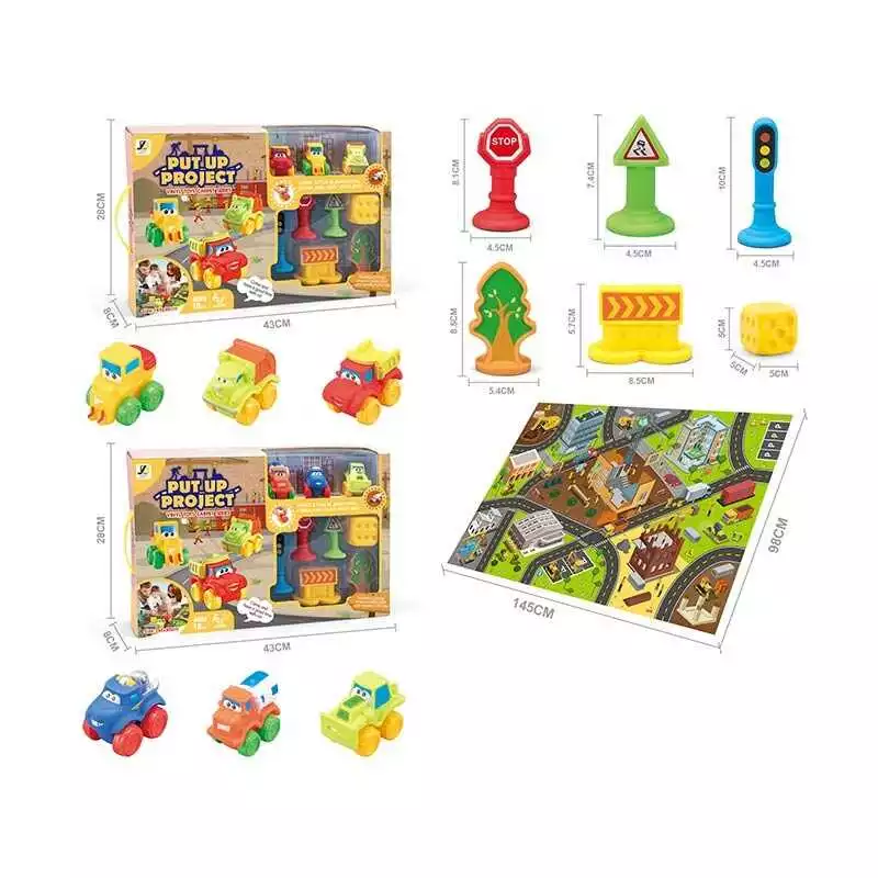 Набор машин JZD - 113 (12) 2 вида, игровой коврик 145х98 см, декорации, в коробке