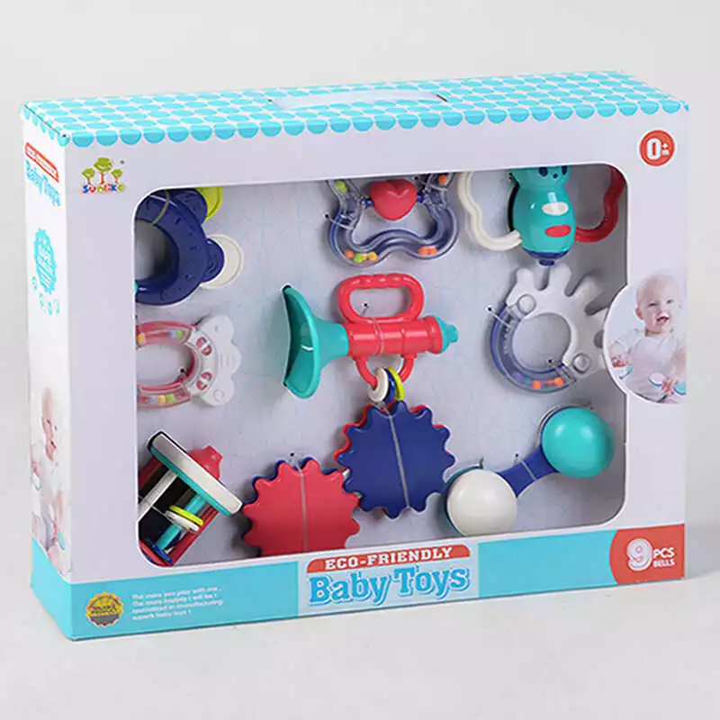 Набор погремушек SL 84836 (24/2) 9 погремушек, грызунок, трещотка, свисток, в коробке