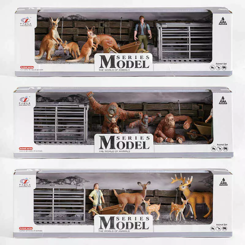 Набор животных Q 9899 D 3 (24/2) “Зоопарк”, 3 вида, 7 элементов, фигурка человека, 4 животных, в коробке