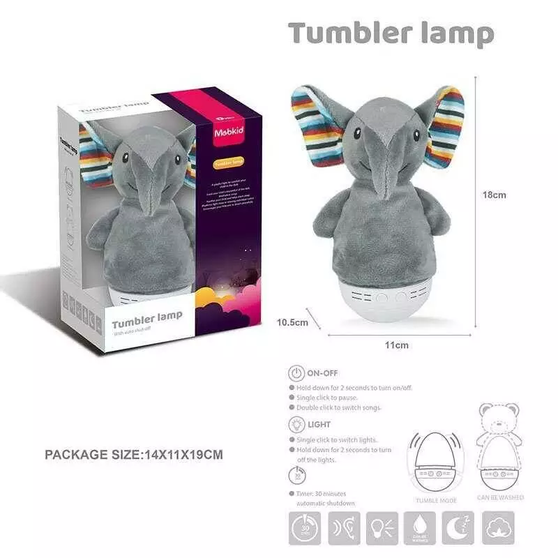 Нелягайко MBQ 663-3 (60) "Слоник", нічник, колискові мелодії, декілька режимів підсвічування, таймер, знімний чохол, в коробці