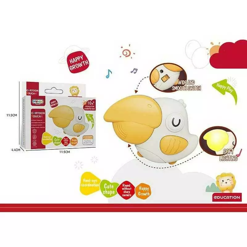 Музична іграшка 368-37 (288) "Тукан", пташка, розмір: 11х3.5х7.5 см, підсвічування, мелодії, кільце - кріплення, в коробці