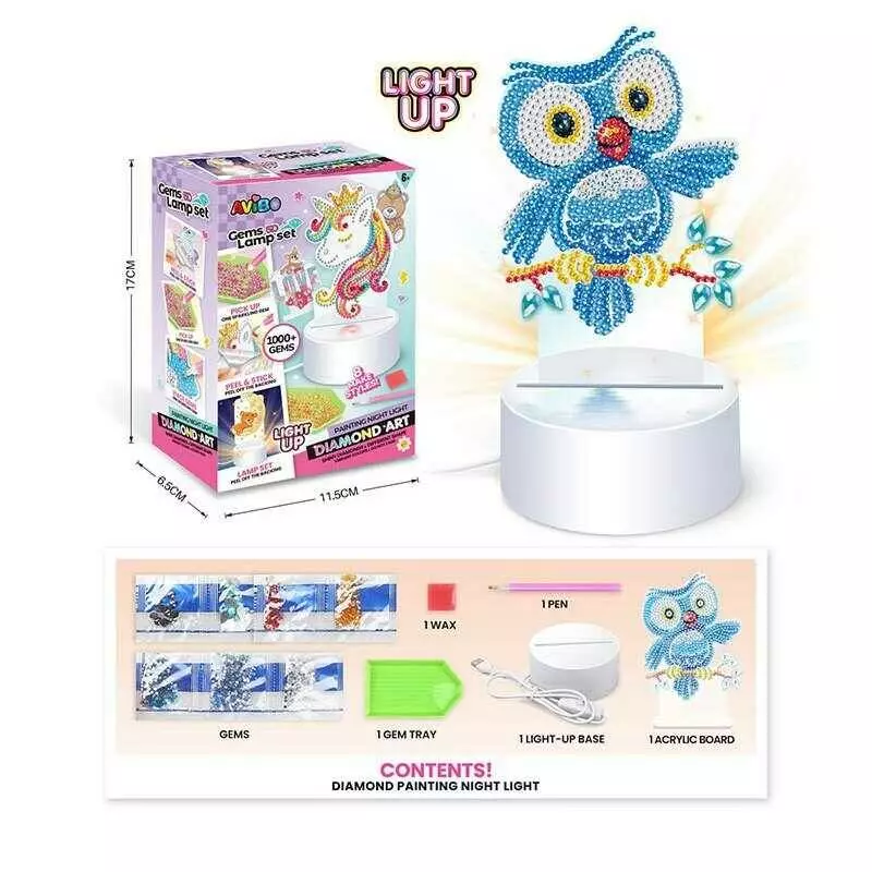 Нічник A 5506 D (120/2) від мережі, 3 режими роботи, алмазна мозаїка, інструменти, в коробці