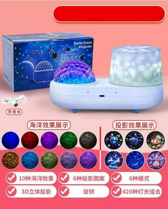 Нічник С 66865 (36) 10 кольорів підсвічування, 5 накладок на проєктор, обертається, таймер, від мережі, USB TYPE-C, в коробці, ВИДАЄТЬСЯ ТІЛЬКИ МІКС В