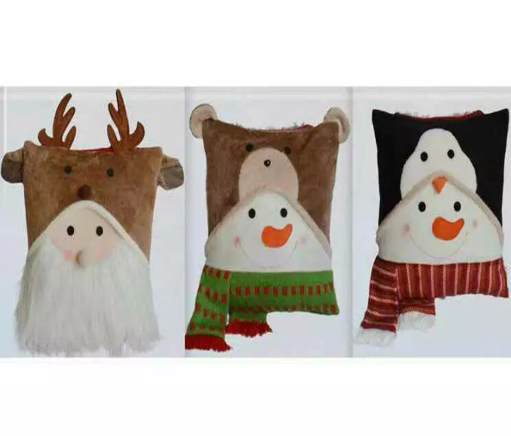 Новорічна декоративна подушка C 67825 (24) 3 види, “Святковий персонаж”, об’ємні деталі, декор, розмір 43х11х43 см, у пакеті, ВИДАЄТЬСЯ МІКС ВИДІВ