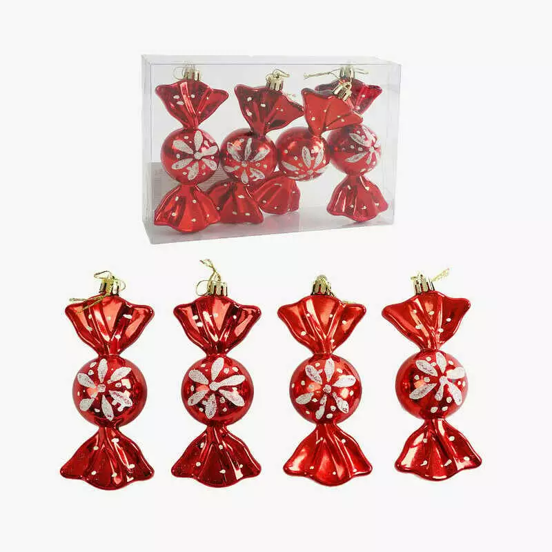 Новорічні прикраси C 67182 (120) 4 штуки, цукерка, висота - 13 см, у слюді