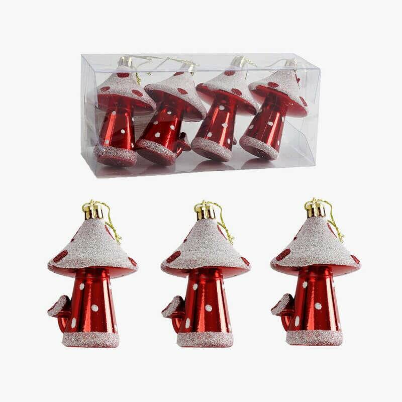 Новорічні прикраси C 67192 (120) 4 штуки, грибочок, висота - 9,5 см, у слюді