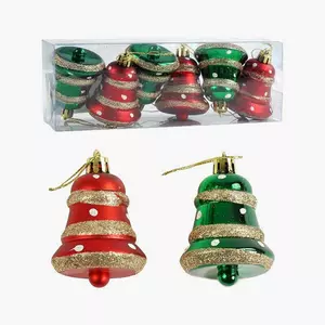 Новорічні прикраси C 67207 (160) 6 штук, дзвоники, висота - 7 см, у слюді