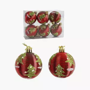 Новорічні прикраси C 67252 (120) 6 штук, кульки, D=5.5 см, у слюді