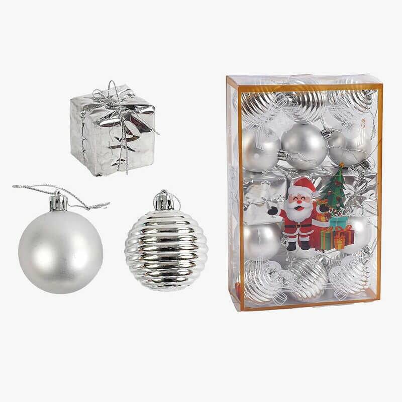 Новорічні прикраси C 67323 (96) 15 штук, кульки, подарунки, D = 5 см, в слюді
