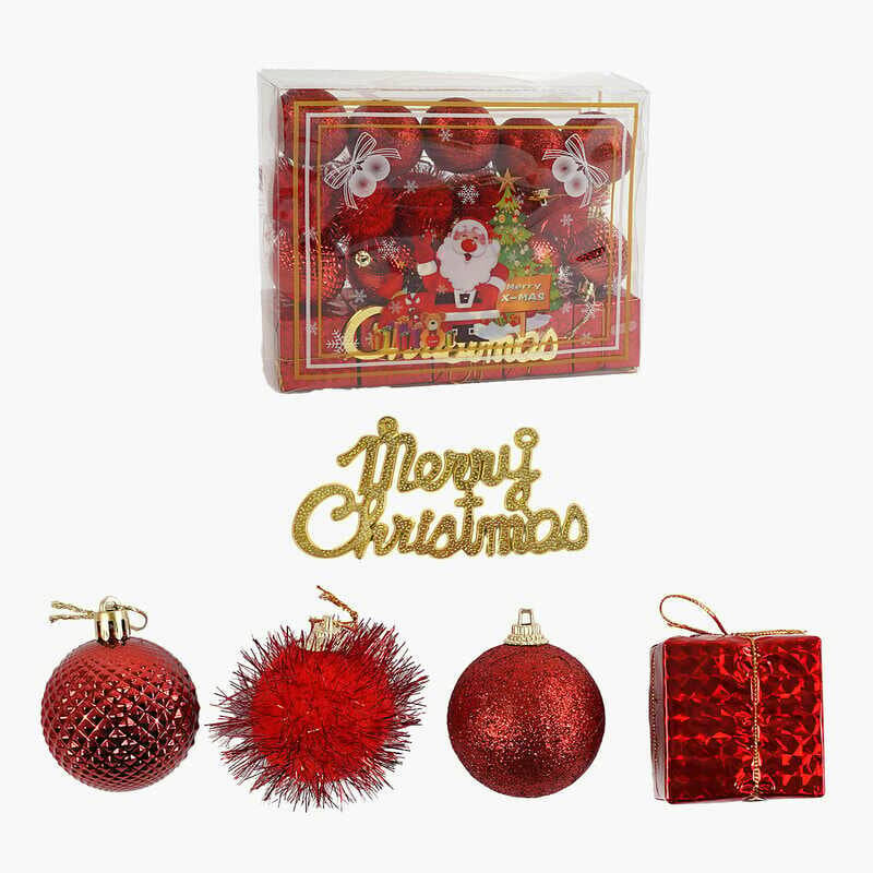 Новорічні прикраси C 67330 (72) 21 штука, кульки, подарунки, підвіска, D = 4,5 см, у слюді