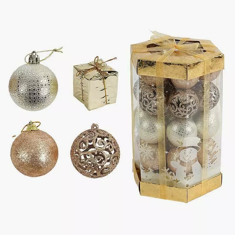 Новорічні прикраси C 67408 (48) 35 штук, кульки, подарунки, D = 5 см, в слюді