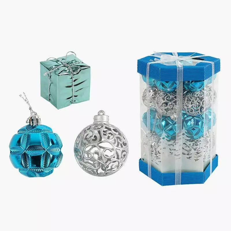 Новорічні прикраси C 67412 (48) 35 штук, кульки, подарунки, D = 5 см, в слюді