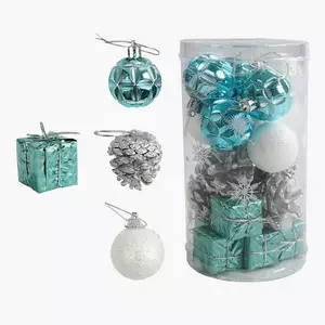 Новорічні прикраси C 67427 (120) 20 штук, кульки, шишки, подарунки, D=4 см, у слюді