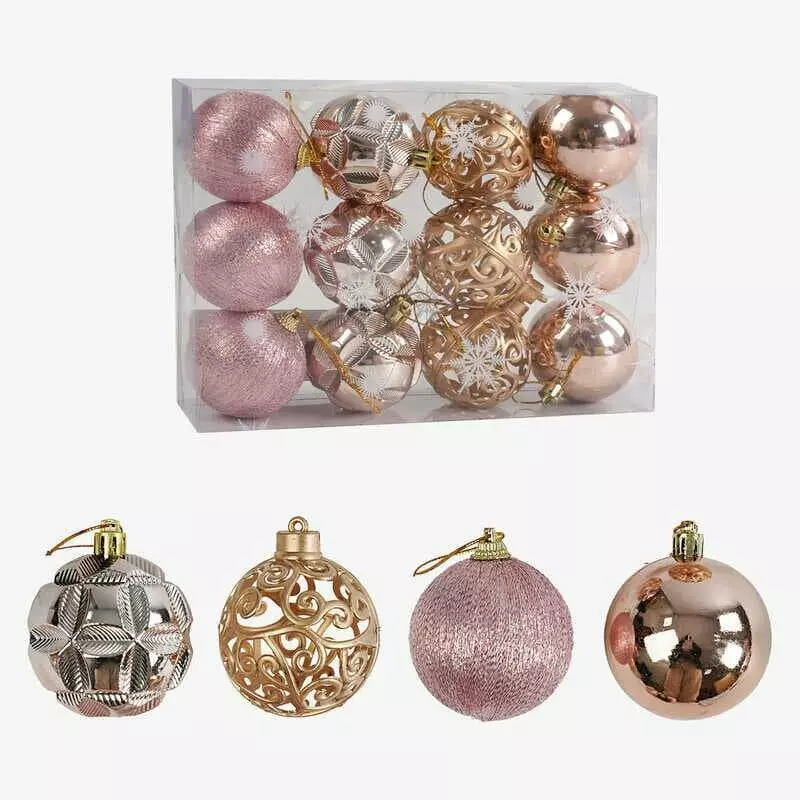 Новорічні прикраси C 67474 (60) 12 штук, кульки, D = 5,5 см, у слюді