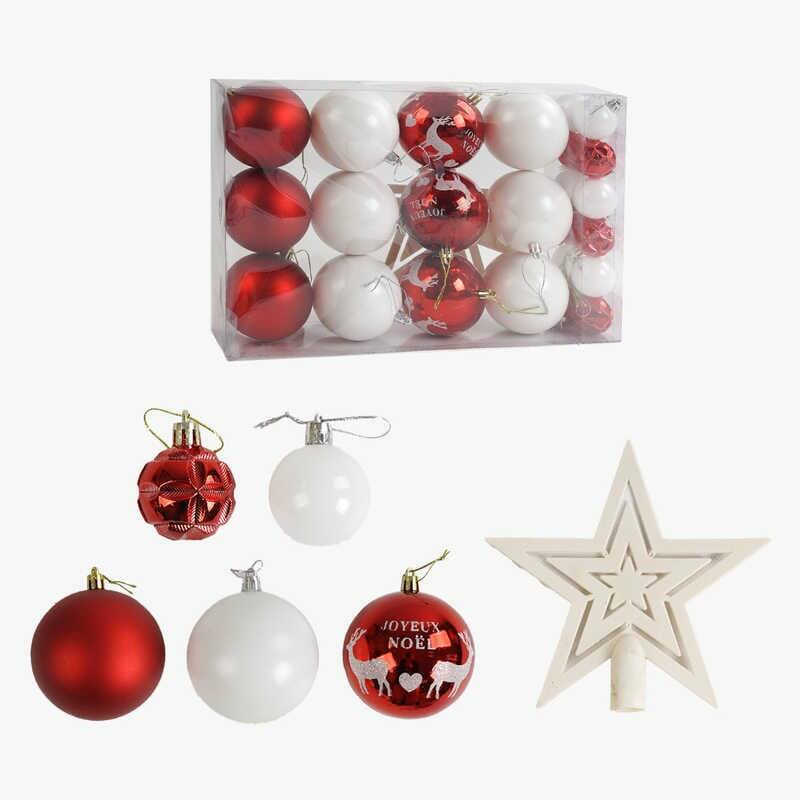 Новорічні прикраси C 67495 (33) 24 штуки, зірочка-верхівка, кульки, maх D=8, min D=4 см, у слюді