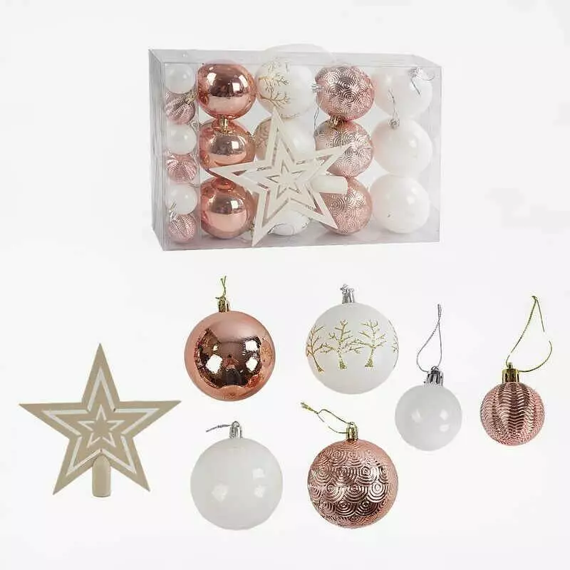 Новорічні прикраси C 67496 (32) 25 штук, кульки, зірка-верхівка для ялинки, в слюді