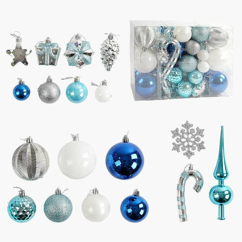 Новорічні прикраси C 67529 (16) 65 штук, кульки, зірочки, шишки, сніжинки, у слюді