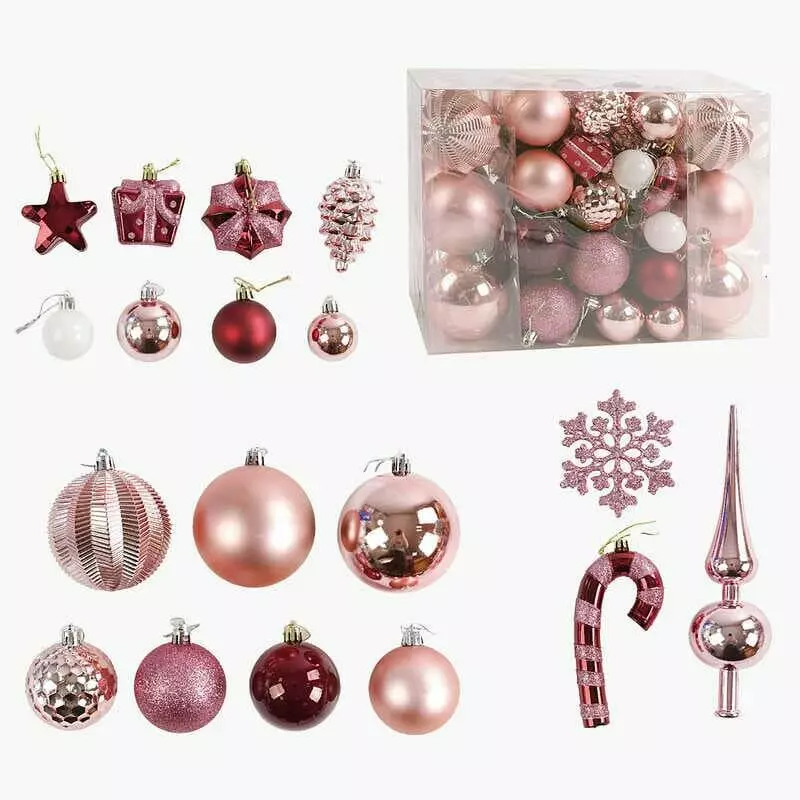Новорічні прикраси C 67530 (16) 65 штук, кульки, зірочки, шишки, сніжинки, у слюді