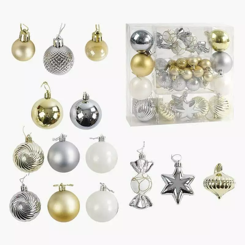 Новорічні прикраси C 67535 (40) 36 штук, кульки, цукерки, бурульки, зірочки, у слюді